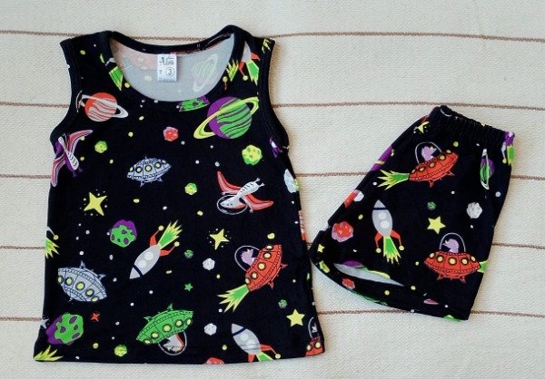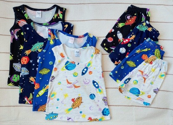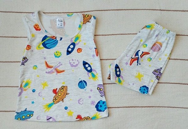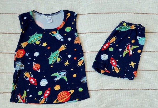 Conjunto: Musculosa + pantalón prenda ideal para el verano, diseñada especialmente para niños. Confeccionada en jersey con ribb en el cuello y sisas, variedad en estampas